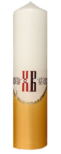 Свеча столб большой двухцветный с глиттером