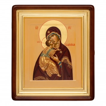 Икона живописная на доске в киоте 24х30 масло, золоченый нимб, киот №1 Владимирская БМ, 04052