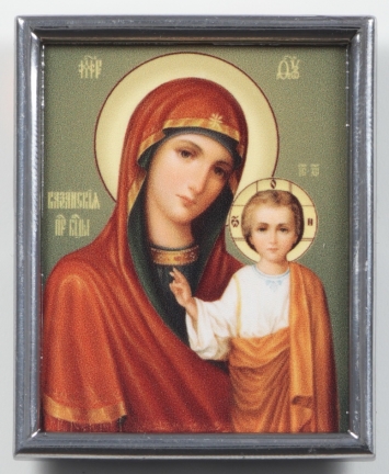 Икона в пластмассовой рамке 4х5 металлизированная Казанская БМ 34