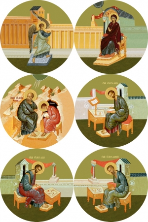 Иконы 30х30, МДФ, круглые (комплект 6шт.) Царские врата иконописные №2