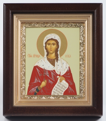 Икона в киоте 11х13 сложный, темпера, рамка золочёная Виктория(Ника)