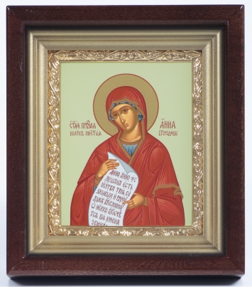 Икона в киоте 11х13 сложный, темпера, рамка золочёная Анна Пророчица