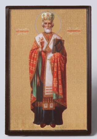 Икона на доске 22х26 объёмная печать, лак Николай Чудотворец поясной (ковчег)
