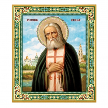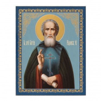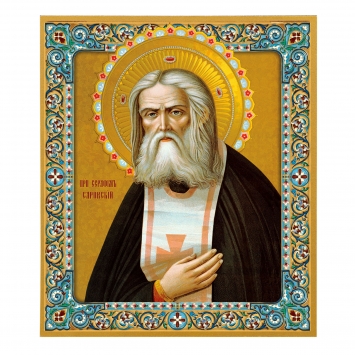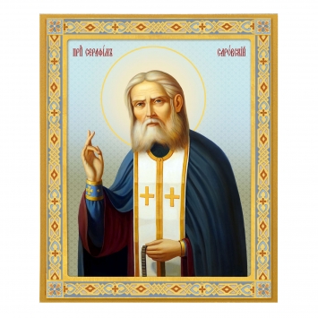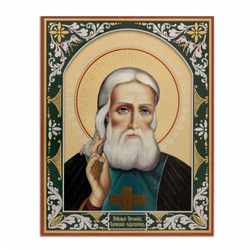 Икона на доске 13х15 золоченое покрытие, объёмная печать, лак Серафим Саровский 2