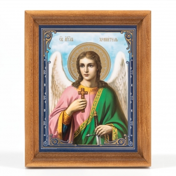 Икона в деревянной рамке №1 11х13 двойное тиснение Ангел-Хранитель (поясной) №12