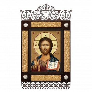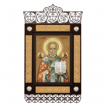 Киот настенный басменный №1254, золочение Николай Чудотворец