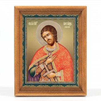 Икона в деревянной рамке №1 11х13 двойное тиснение Александр Невский 9