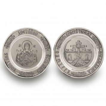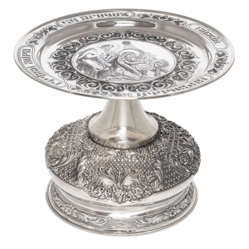 Дискос с поддискосником ручная гравировка, чеканка / ф280мм-потир 2,0л"№30" / серебро (УИН)