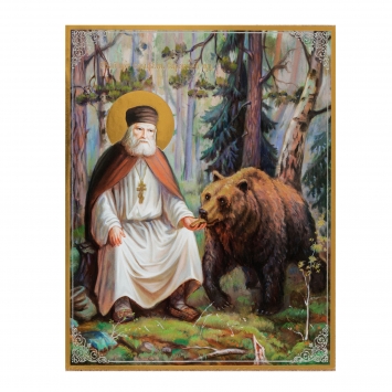 Икона на доске 13х15 золоченое покрытие, объёмная печать, лак Серафим Саровский 1