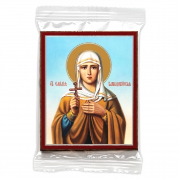 Икона на деревянном планшете 6х9 двойное тиснение, аннотация, упаковка Емилия Каппадокийская, прп., (2)