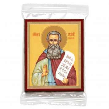Икона на деревянном планшете 6х9 двойное тиснение, аннотация, упаковка Арсений Великий (2)