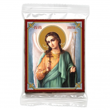 Икона на деревянном планшете 6х9 двойное тиснение, аннотация, упаковка Ангел-Хранитель (поясной) №9