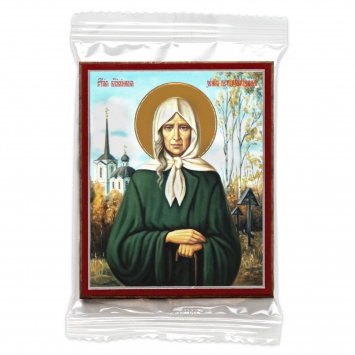 Икона на деревянном планшете 6х9 двойное тиснение, аннотация, упаковка Ксения Петербургская, блж. (8)