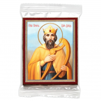 Икона на деревянном планшете 6х9 двойное тиснение, аннотация, упаковка Царь Давид 3