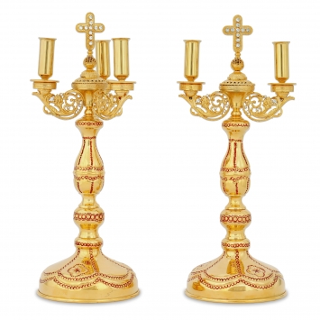 Подсвечник №17 / 2 свечи / эмаль, 12-деколей / золочение