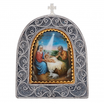 Икона настольная №155 / Фианиты деколь, эмаль / серебрение / Рождество Христово