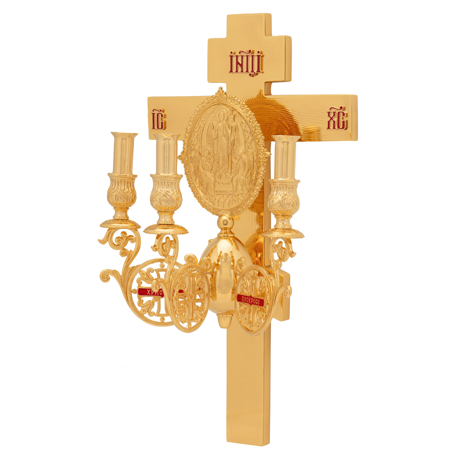 Трехсвечник пасхальный на кресте №3 золочение