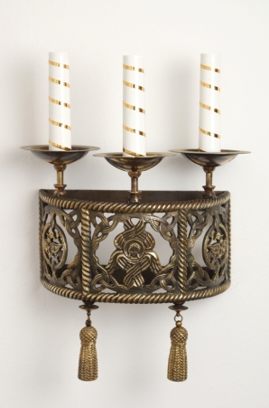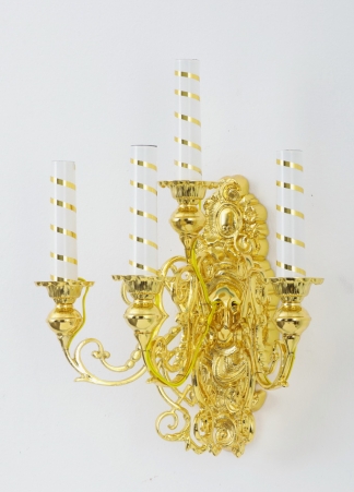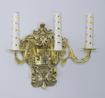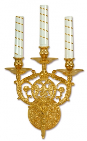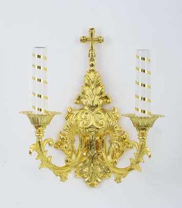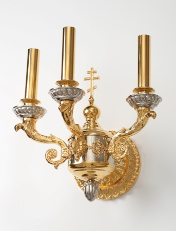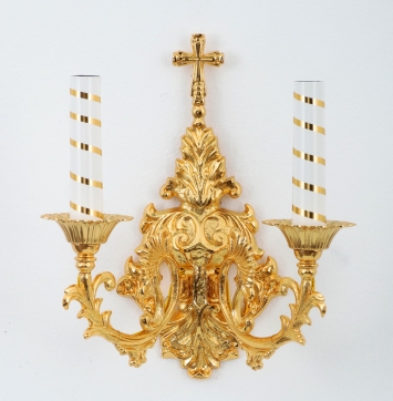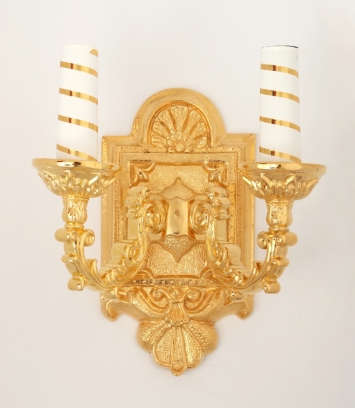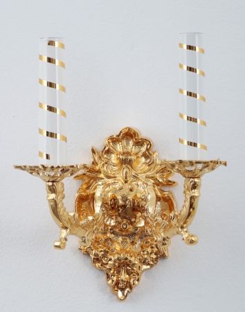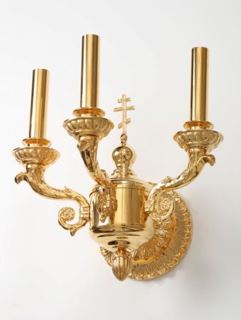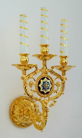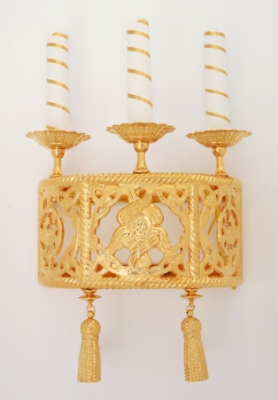 Лампада 2 свечи с квадратным настенником г / пл золочение