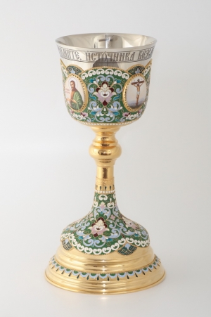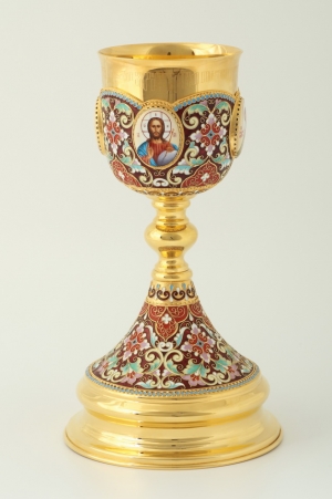 Потир 1.0л 4-деколи, филигрань, эмаль / песочные часы / золочение / мельхиоровый стакан