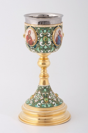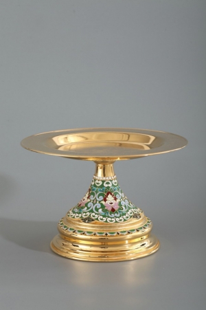 Потир 0.75л 4-финифти, филигрань, эмаль / поддон 1,5л потира / золочение