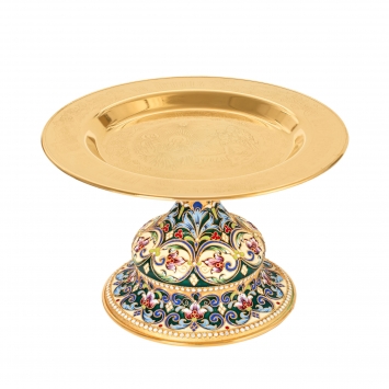 Дискос с поддискосником / ф220мм-потир 0,5л "№3" / филигрань, эмаль, роспись / золочение