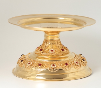 Дискос с поддискосником / ф240мм-потир 1,0л "№8"А" / филигрань, эмаль, роспись.чеканка.гравировка / золочение