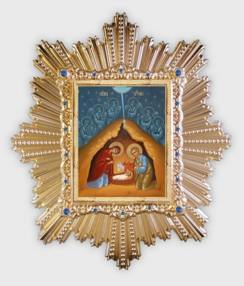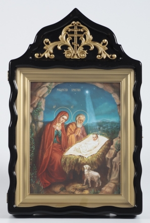 Киот фигурный с резным навершием под икону 30х40 Рождество Христово