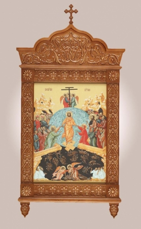 Киот фигурный с резным навершием под икону 24х30 Воскресение Христово