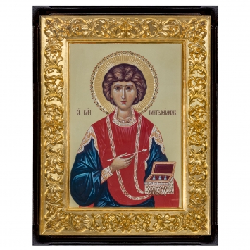 Киот 60х90 подрамник д / з, икона на канвасе п / золото Пантелеимон