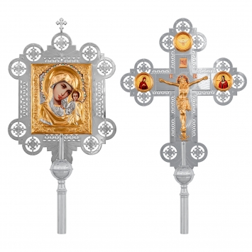 Крест-икона №2 запрестольная двухст.с гальванопл.накл. комб. без древок