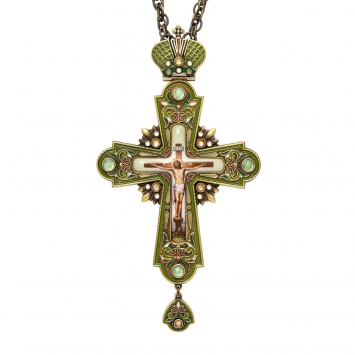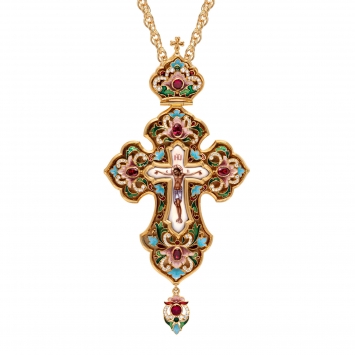 Крест наперсный №1417 / Фианиты финифть / золочение