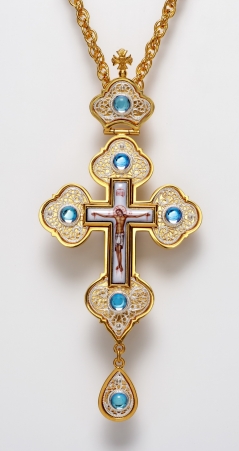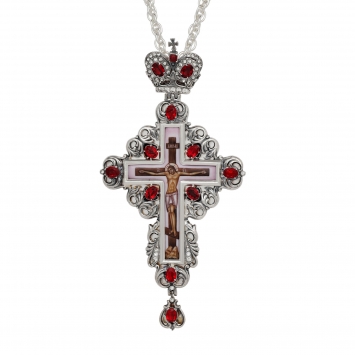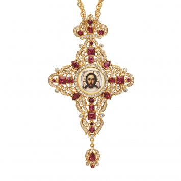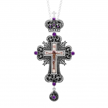 Крест архиерейский №1411 / Фианиты серебро финифть (УИН)