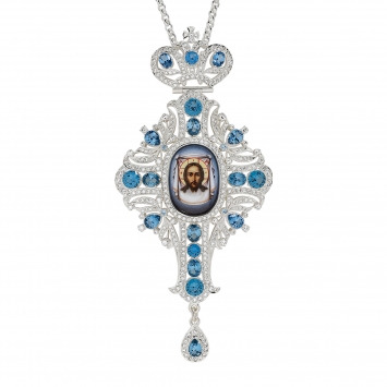 Крест наперсный №7 / Фианиты деколь, эмаль, / серебрение