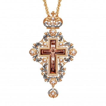 Крест архиерейский №1415 / Фианиты деколь, эмаль / золочение