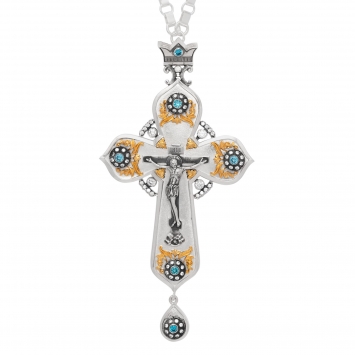Крест архиерейский №212 / Фианиты деколь / золочение, серебрение