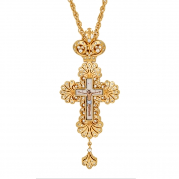 Крест архиерейский №210 / Фианиты деколь / золочение