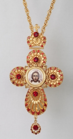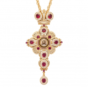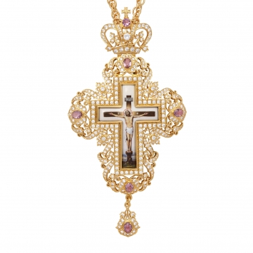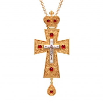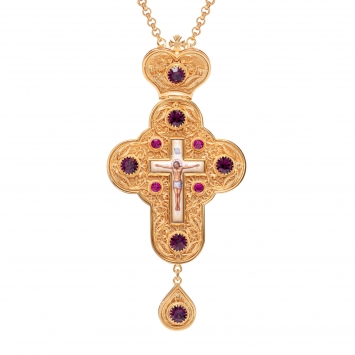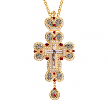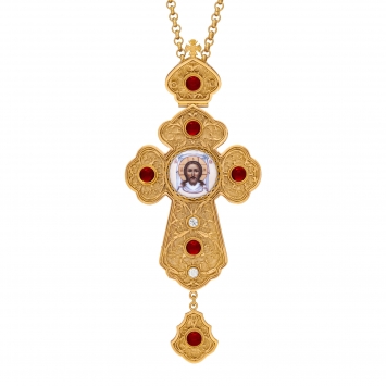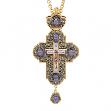 Крест архиерейский №19 эмаль, финифть / круглая / золочение