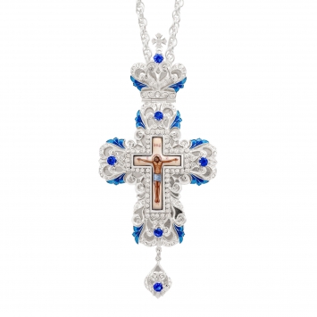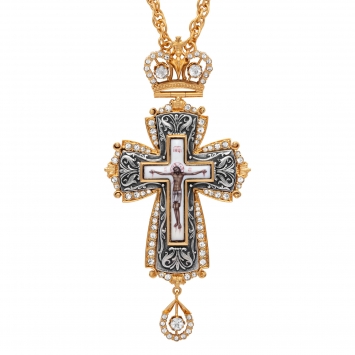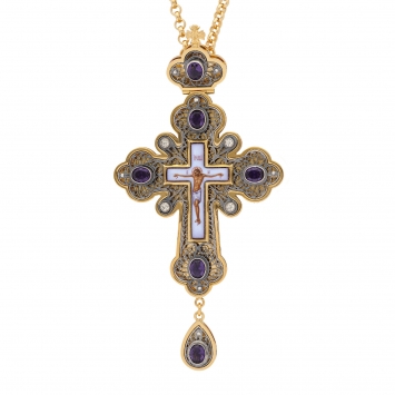 Крест наперсный филигрань №0018 / Фианиты двойной рант финифть / золочение, сербрение