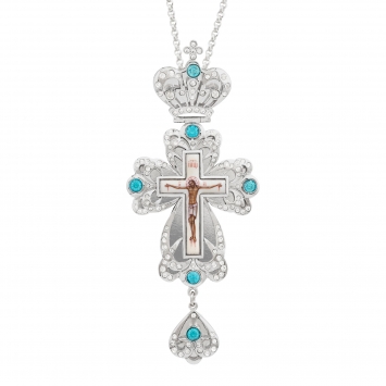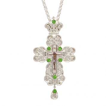 Крест наперсный №193 / Фианиты деколь / серебрение