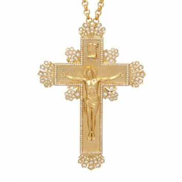 Крест архиерейский №189 / Фианиты литьевое распятие / золочение, серебрение