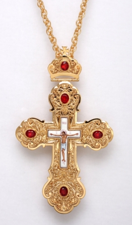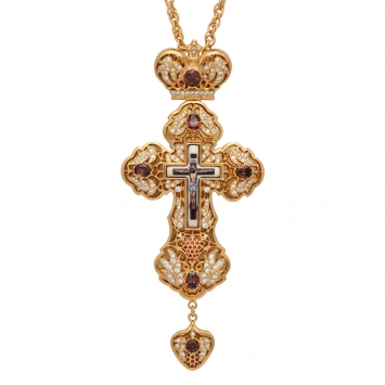 Крест архиерейский №1286 / Фианиты гильяш.деколь / золочение, серебрение