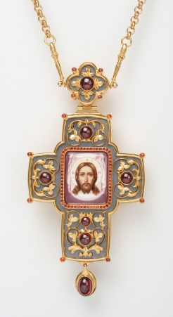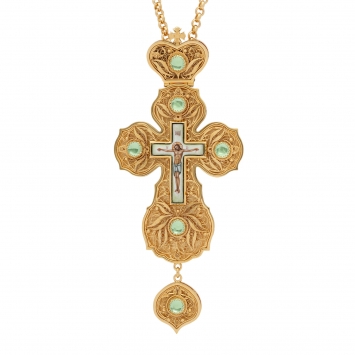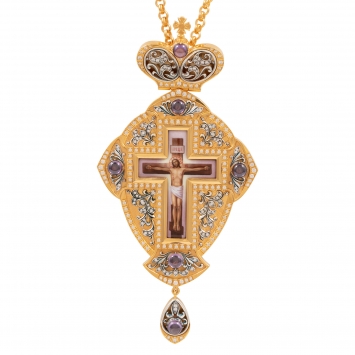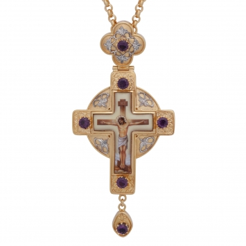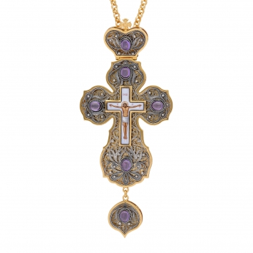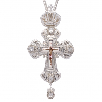 Крест архиерейский №1286 / Фианиты / золочение / серебро финифть, гильяш (УИН)