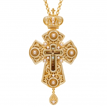 Крест наперсный филигрань №0010 / Фианиты двойной рант финифть / золочение