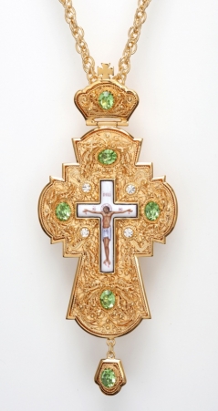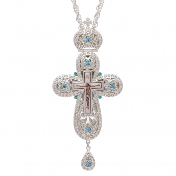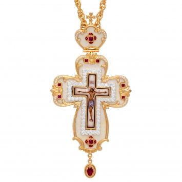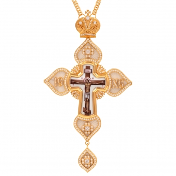 Крест наперсный №159 / 1 / Фианиты эмаль, перламутр / золочение, серебрение
