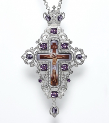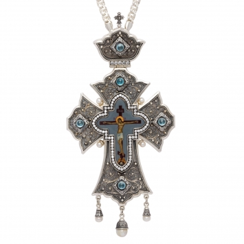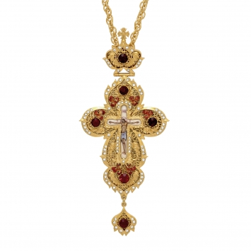 Крест наперсный №227 / Фианиты живопись, филигрань