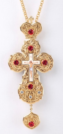 Крест наперсный №224 / Фианиты финифть, эмаль / золочение
