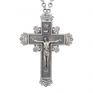 Крест наперсный №1561 / Фианиты деколь / серебрение