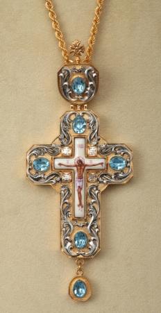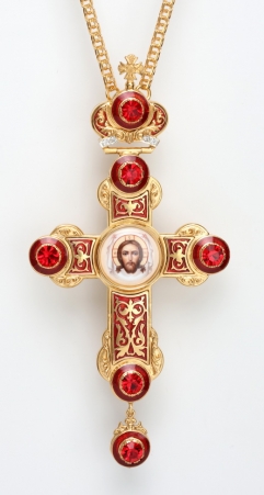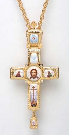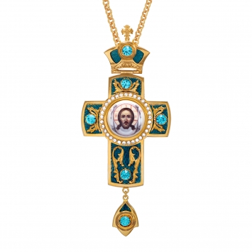 Крест архиерейский №38 эмаль финифть / круглая / золочение