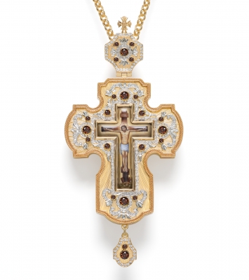 Крест наперсный №200 / Фианиты гильяш / золочение, серебрение