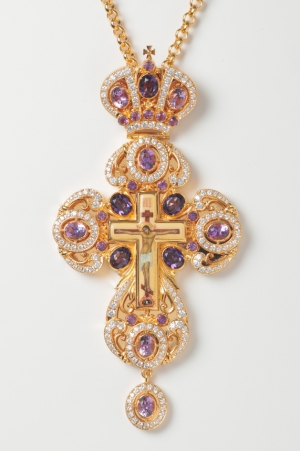 Крест архиерейский №190 / Фианиты эмаль / золочение